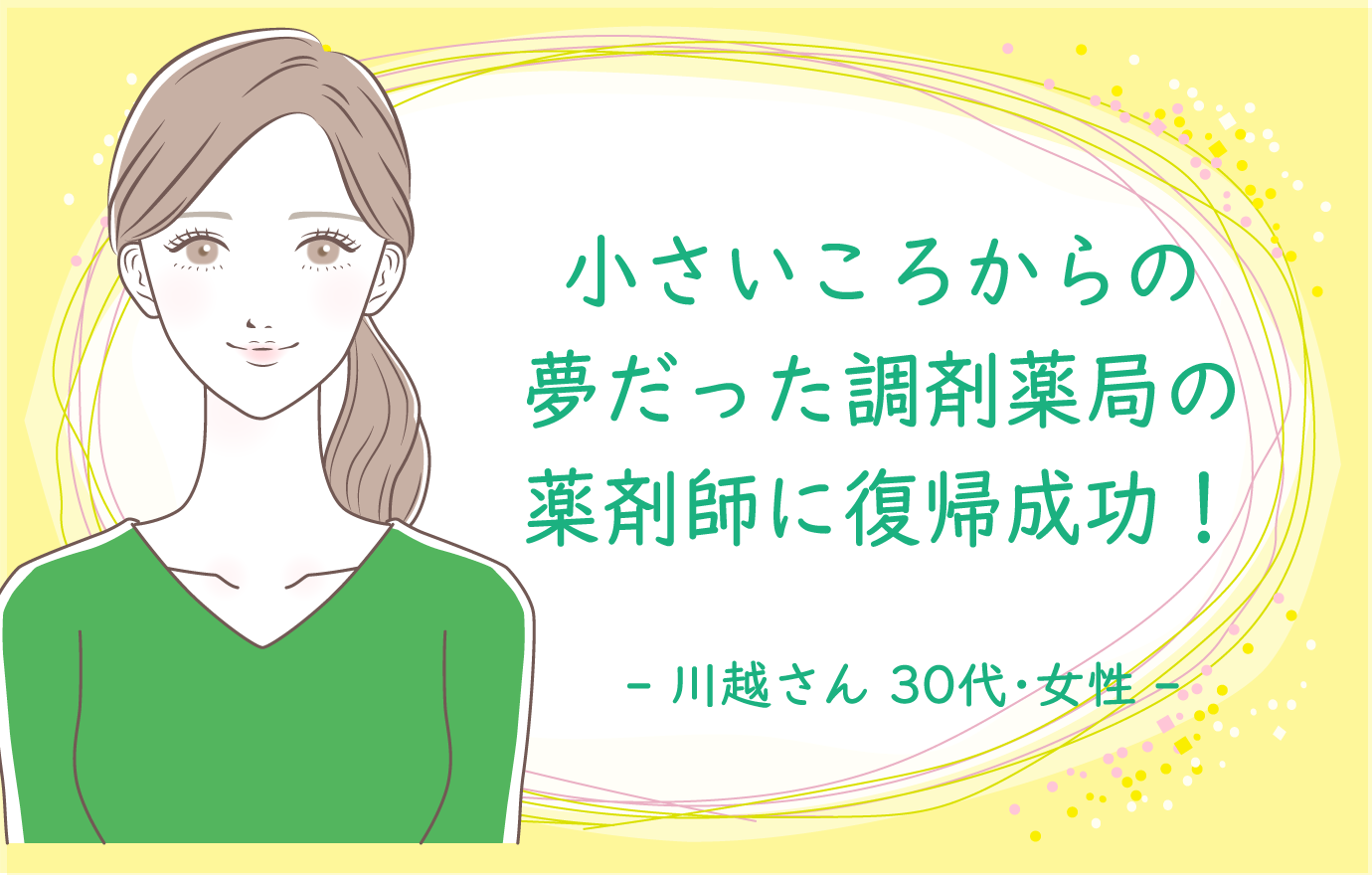コロナ禍の影響で想像もしなかった病院経験を経て、小さいころからの夢だった調剤薬局薬剤師に無事復帰成功!